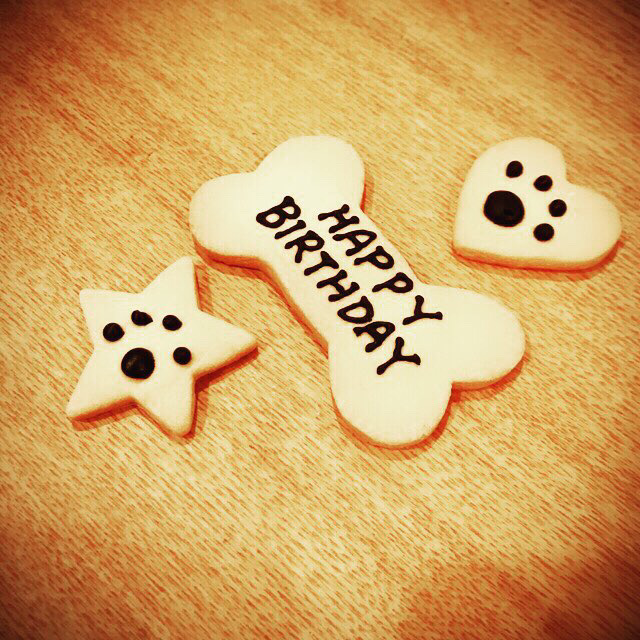 と、写真が何もないのは寂しいので、明日お誕生日の愛犬レン君の去年のお誕生日クッキーのお写真を。