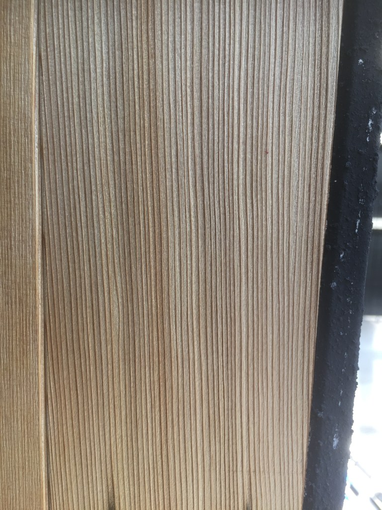 天然はいいですね。 投稿日: 2021年10月12日 投稿者: 株式会社ひかり工務店 こんばんは、野澤です。 先日、メンテナンスにお伺いした際、外壁経年変化のいい具合が、というより、私の好きな具合が ありましたので、思わず写真を撮ってしまいました。 浮造り 経年変化で、杢目の柔らかい部分が減り、固い杢目部分が浮いた状態です。 フロアや壁材の中には、人工的にそのように加工したものもありますが、 そうではなく、経年でとてもいい表情になっておりました。 天然浮造り 天然フグの薄造り どちらも大好きです!