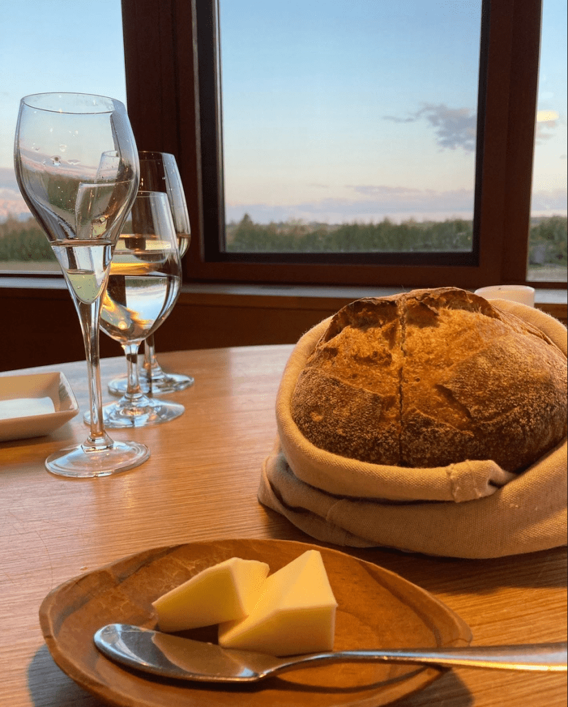 内陸に位置するのでいかにも北海道なご飯は出てこないのですが、ホテルの隣にパンの焼き釜があり、信じられないくらいおいしいパンが出てきます。