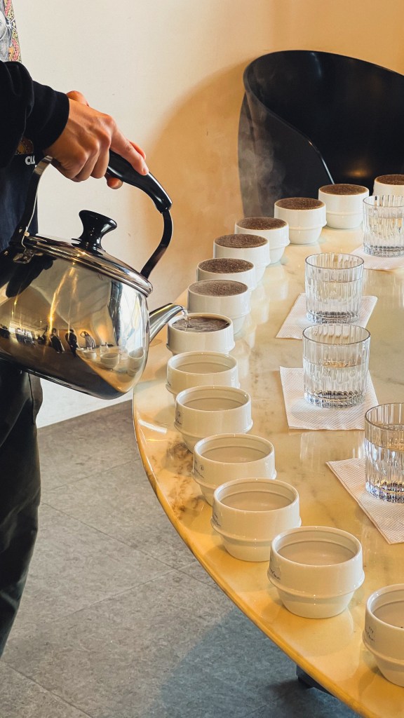カッピングというのは、焙煎されたコーヒー豆の味をチェックするためのいわば品評会の様なものです。様々な人が一つのコーヒーをテイスティングして豆のフレーバーやクオリティをチェックする会の事を言います。