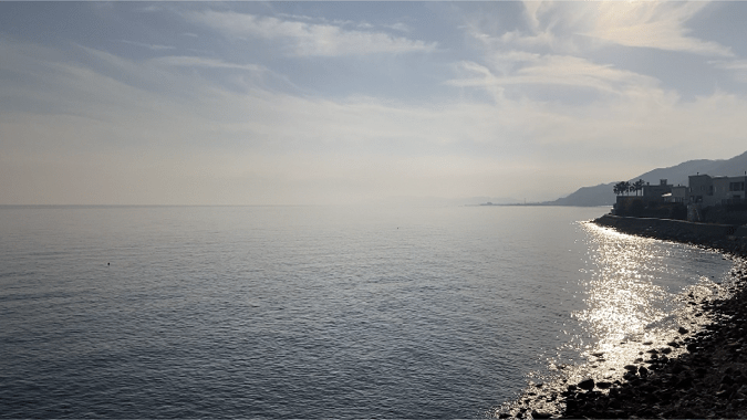 天気が良くて、綺麗な水平線にうっとりしていました。