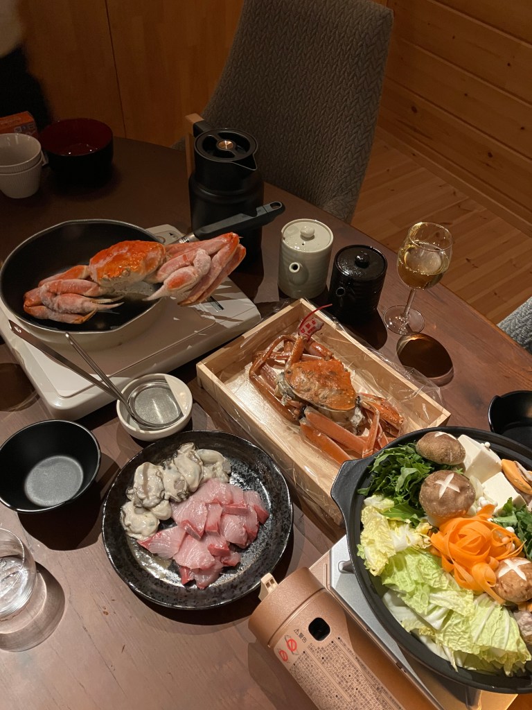 年越し旅行 投稿日: 2025年1月11日2025年1月11日 投稿者: 株式会社ひかり工務店 こんにちは!企画推進部の近藤です。 改めまして、新年明けましておめでとうございます。 2024年の年末から、2025年の年始にかけて、鳥取県にある「OLIF villa in AKEMANOMORI」に宿泊してきました! 松葉蟹と大山鶏のお鍋、客室露天風呂、薪ストーブ、、、 自然に囲まれた空間で、新鮮な空気をたくさん吸いながら、贅沢な時間をゆっくりと楽しんできました。 今年は年女でもあるので、この贅沢な時間を励みに、一層頑張りたいと思います🐍本年もどうぞよろしくお願いいたします。